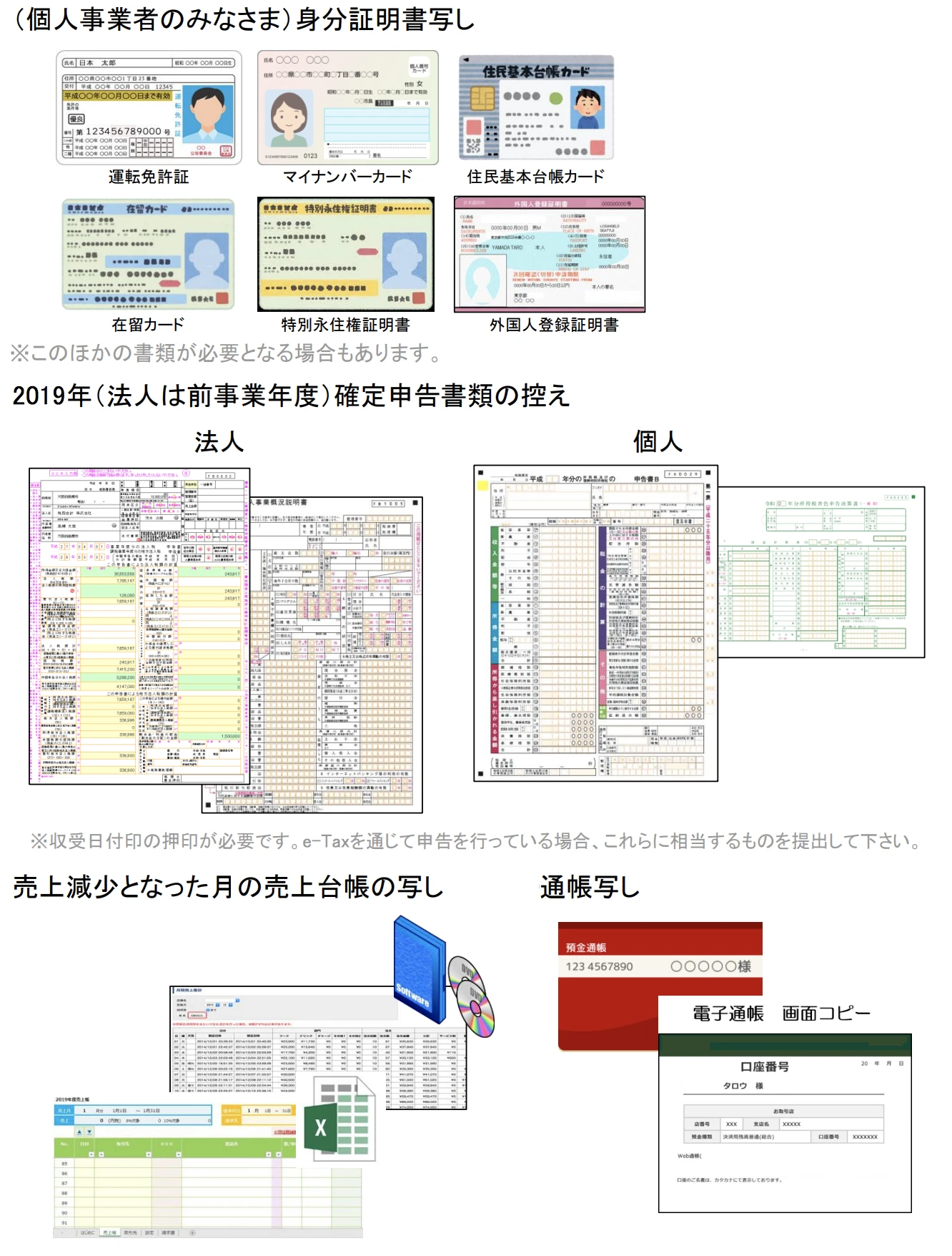 収入が減少したことがわかるもの(給与明細、預金通帳など、様式は問わない)