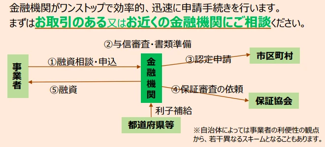 民間金融機関の場合、各都道府県ごとの制度融資の仕組みを使うので、地域によって細かい条件の違いがある