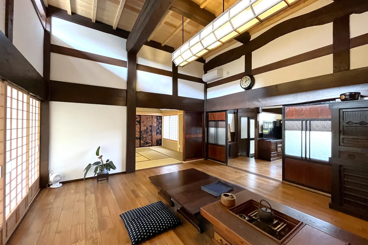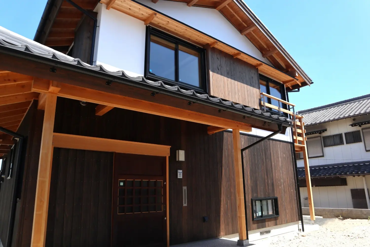昨夏建て方を行った大屋根の移築古民家が、今年5月に竣工。移築前に建っていた新潟県上越市の土地柄・気候風土のためか、欅の差鴨居は尺六寸(485mm)、圧巻です。江戸時代末期に建てられたとのことですから、160年以上風雪に耐えてきました。1階の天井高さは4.0m。4m以上の雪が積もっても2階から出入りできます。移築先の愛知県江南市では、雪がそれほど積もることはないでしょう。上越市で160年、江南市で160年。実現するといいなぁ~