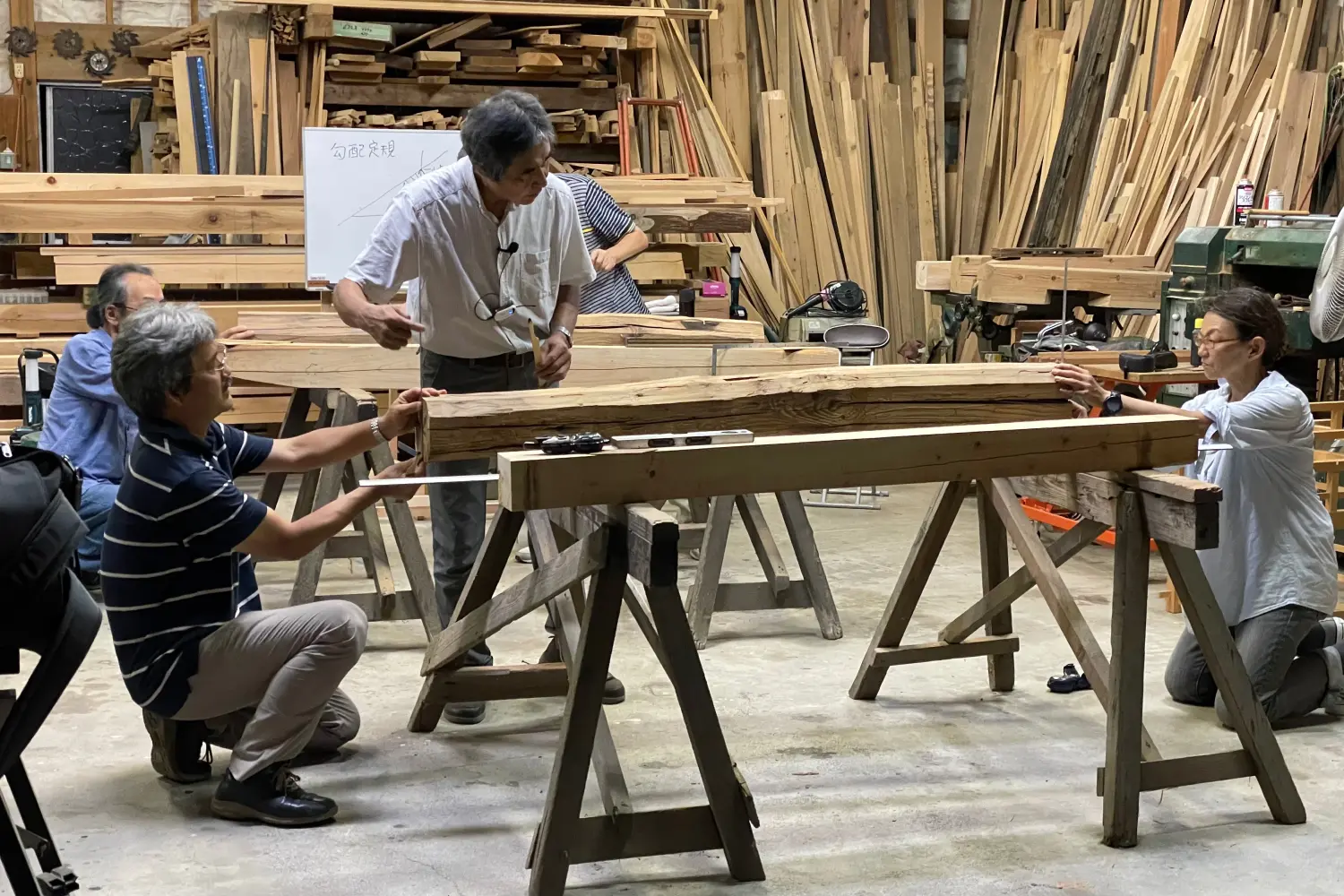 昨年は、新建築誌上に16回(1985/4~1986/7)連載された「棟梁の技術思想に学ぶ」のZoom勉強会/全8回が〈木の家ネット・埼玉〉の企画で開かれました。連載メンバーに名を連ねていたため講師を務めました。スミの技術を体験してもらうため設計者の皆さんに、実習として捻じれた古材に基準となるシンとミズ、垂木勾配墨を打って頂きました。プレカット全盛時代にあって、大工にとっても縁の薄くなった技術かもしれません。(撮影/綾部さん)