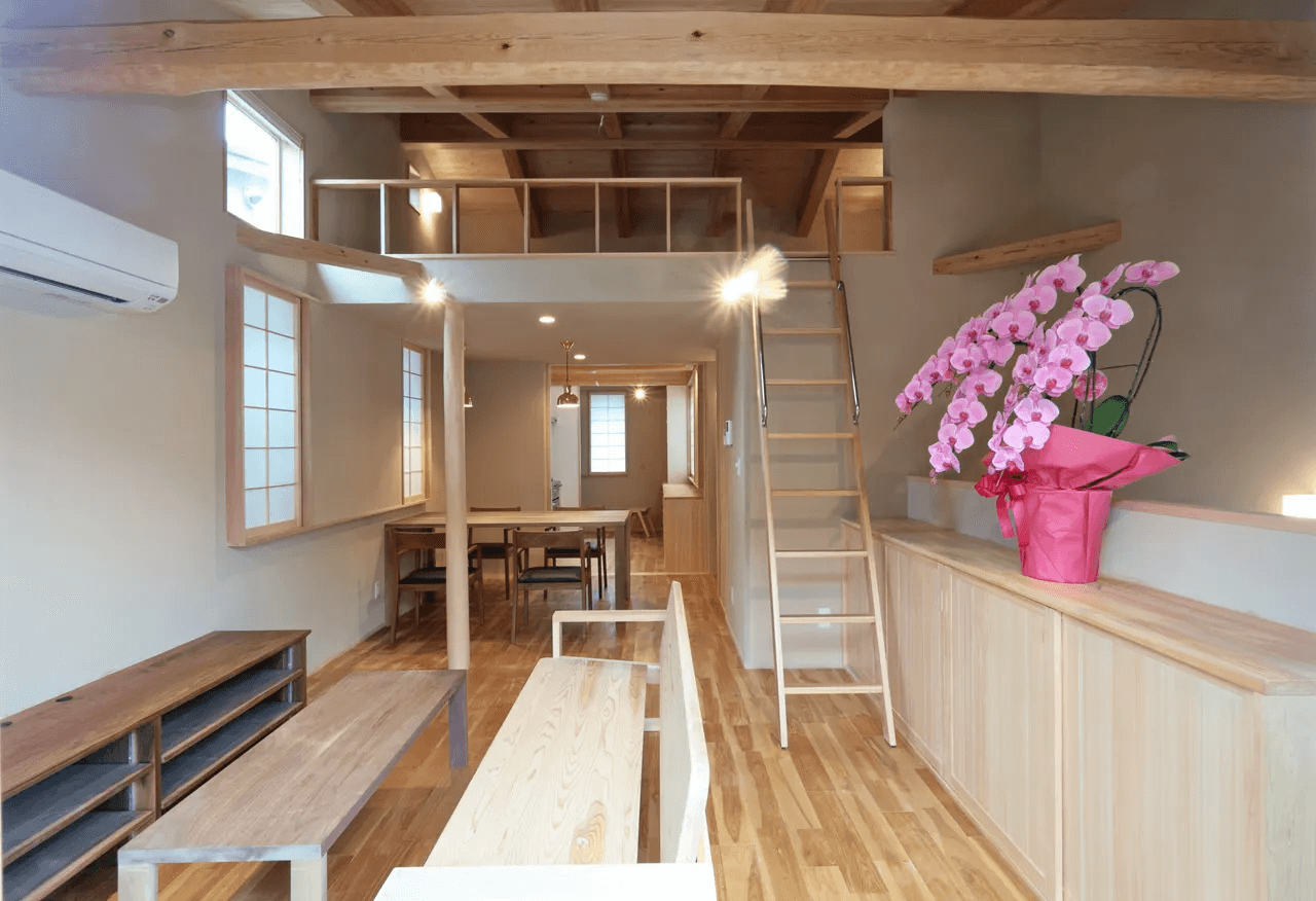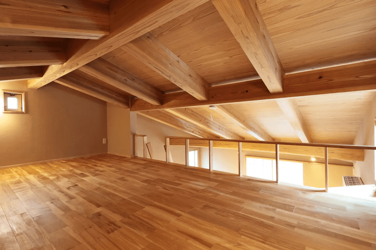 勾配天井を利用して設けたロフトは大容量の収納スペース