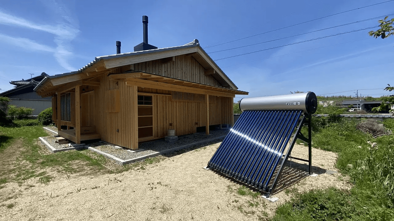 外部木建具、内障子、簾、葦簀、太陽熱温水器、薪の風呂窯利用