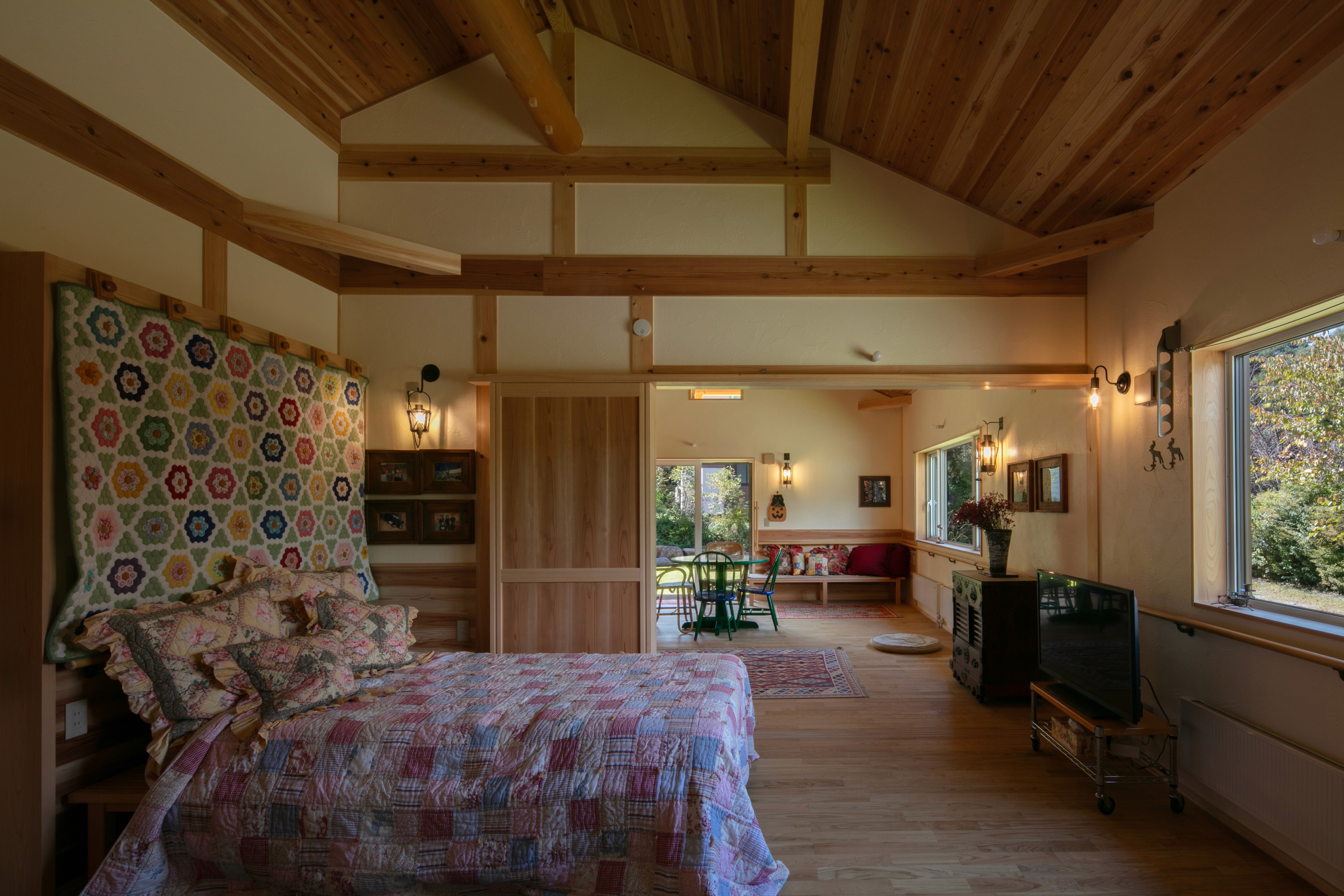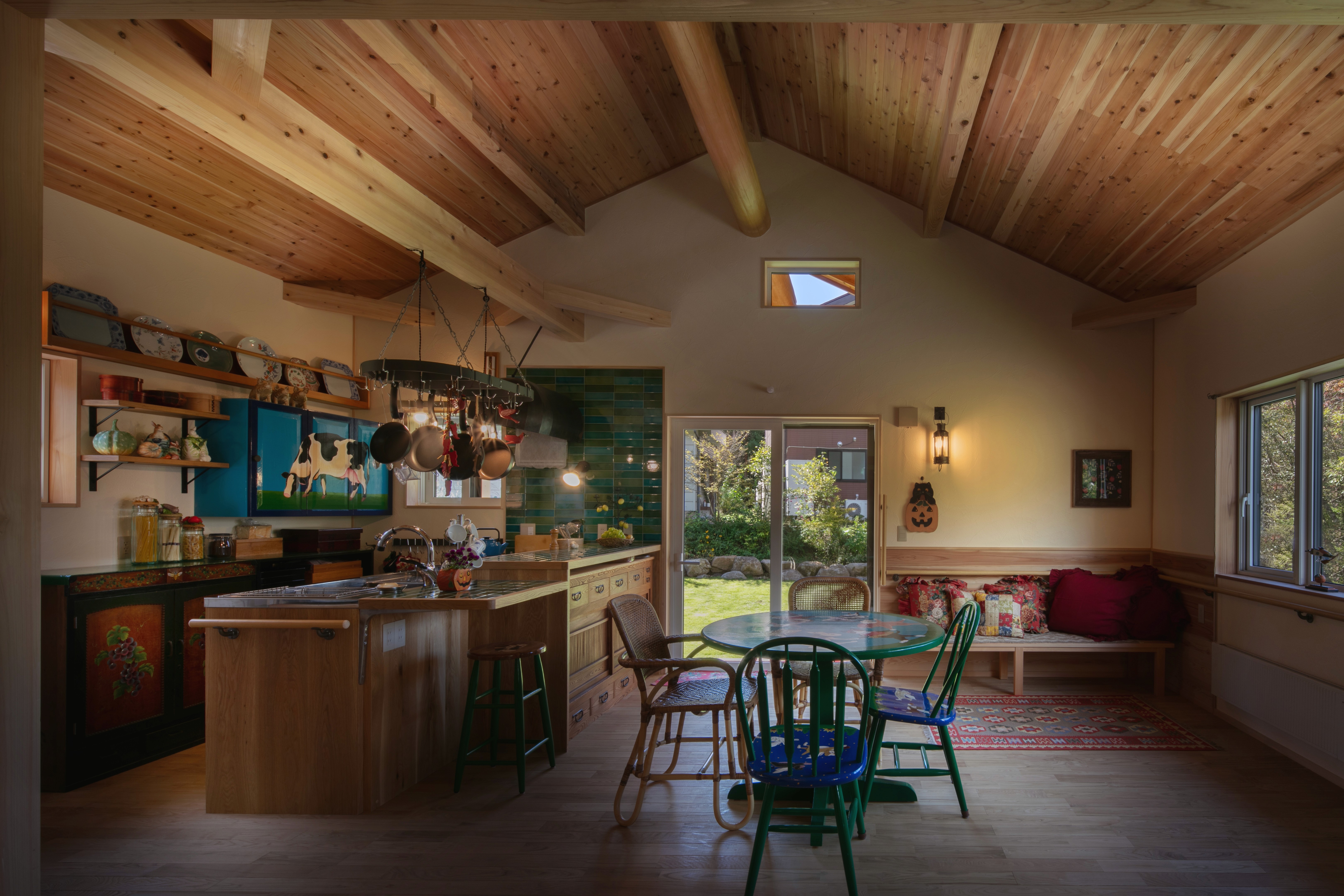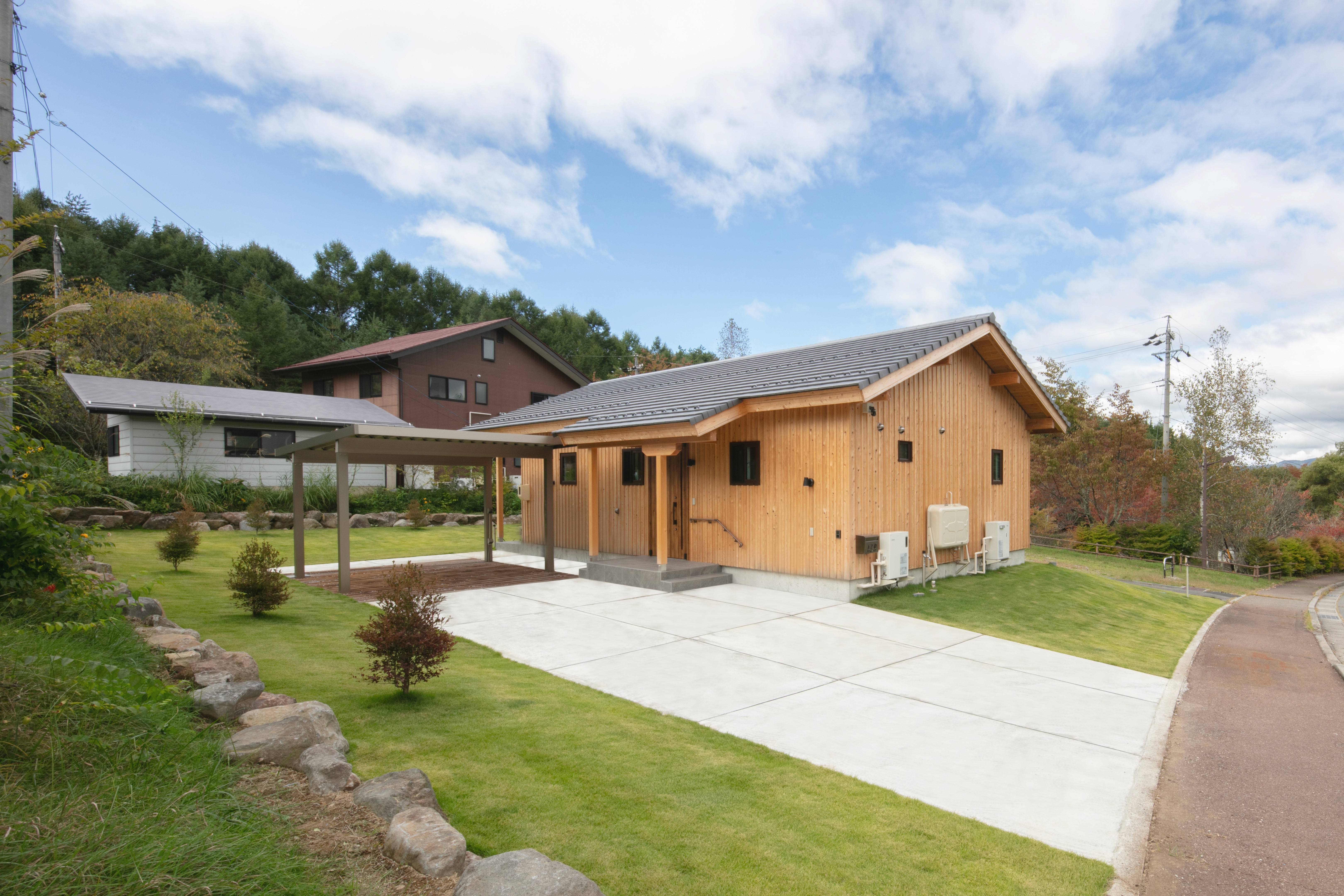 海抜1000mの蓼科高原に建つ平屋住宅です。構造材は三河材の桧、杉を使用し大工の手刻みによる建て方。 屋根は三州陶器平板瓦葺き。 乾式工法により、壁内部に吹込み断熱材のドイツ製ZELLをt=120吹き込み。 さらに外張り断熱にはフォレストボードt=50を採用。 屋根も壁同様に吹込み断熱ZELLとフォレストボードで高断熱、高透湿、高調湿をかなえました。