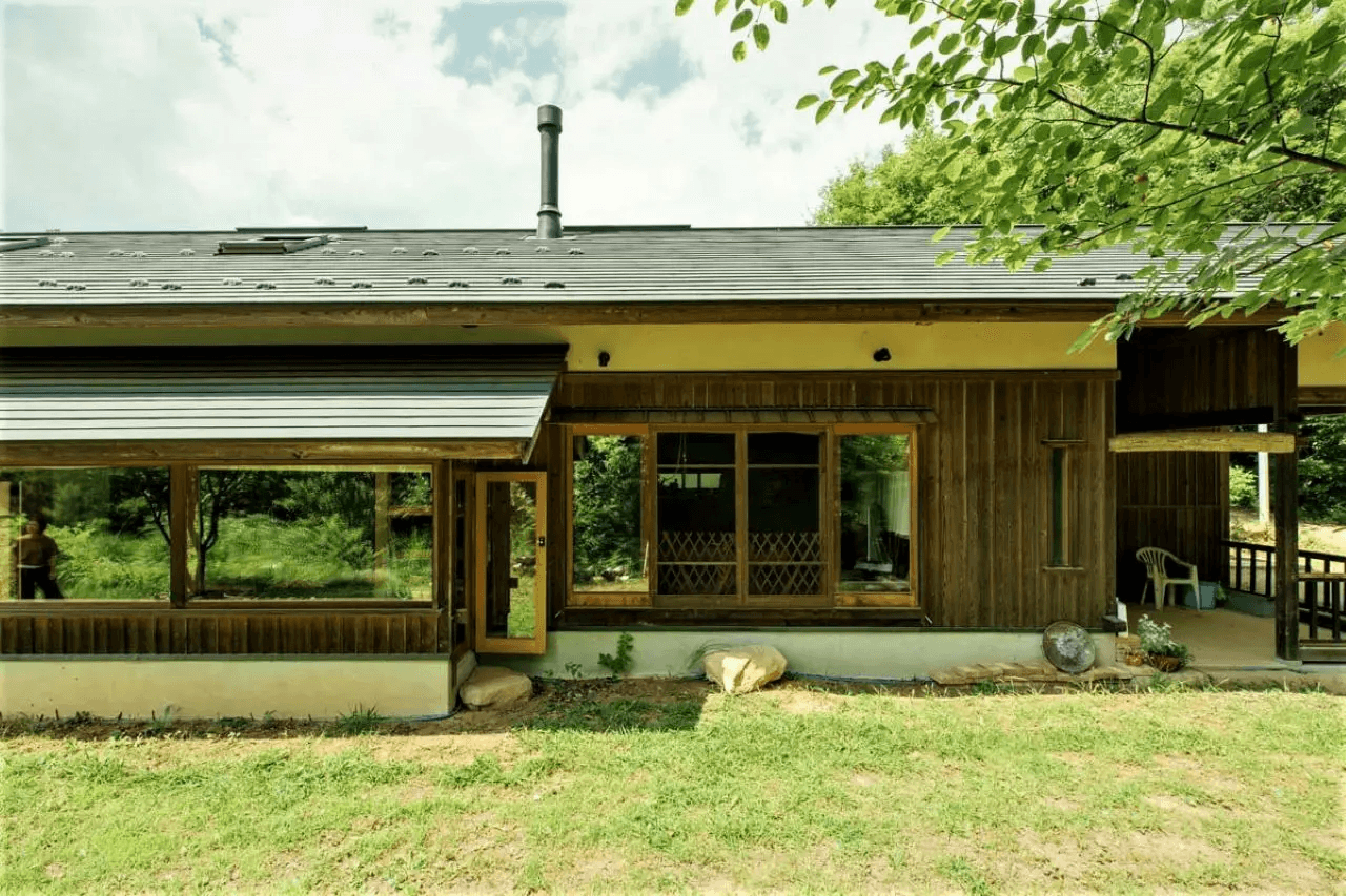 深く出した軒に守られた 塗装をしない無垢の板壁