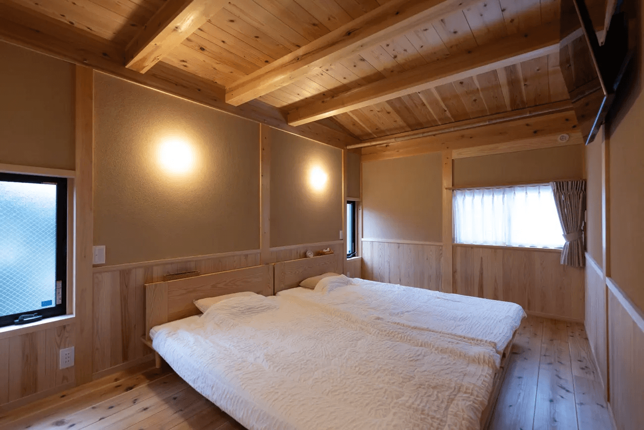 風通しが良いように対角線上に窓を配置しました。また、個別に体温調整ができるように小さな窓を枕元に配置しました。
