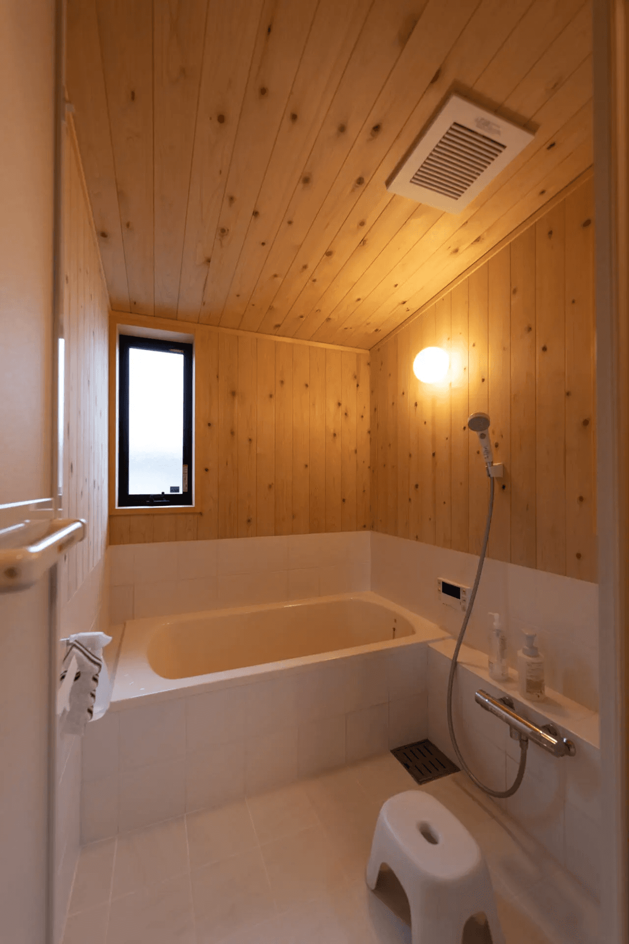 ヒバの板を張ったお風呂です。