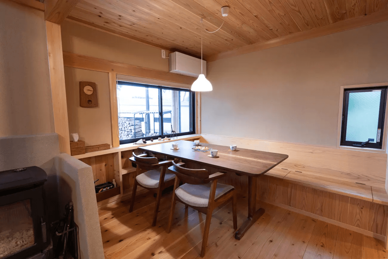 リビングとダイニングの間に薪ストーブを配置しました。