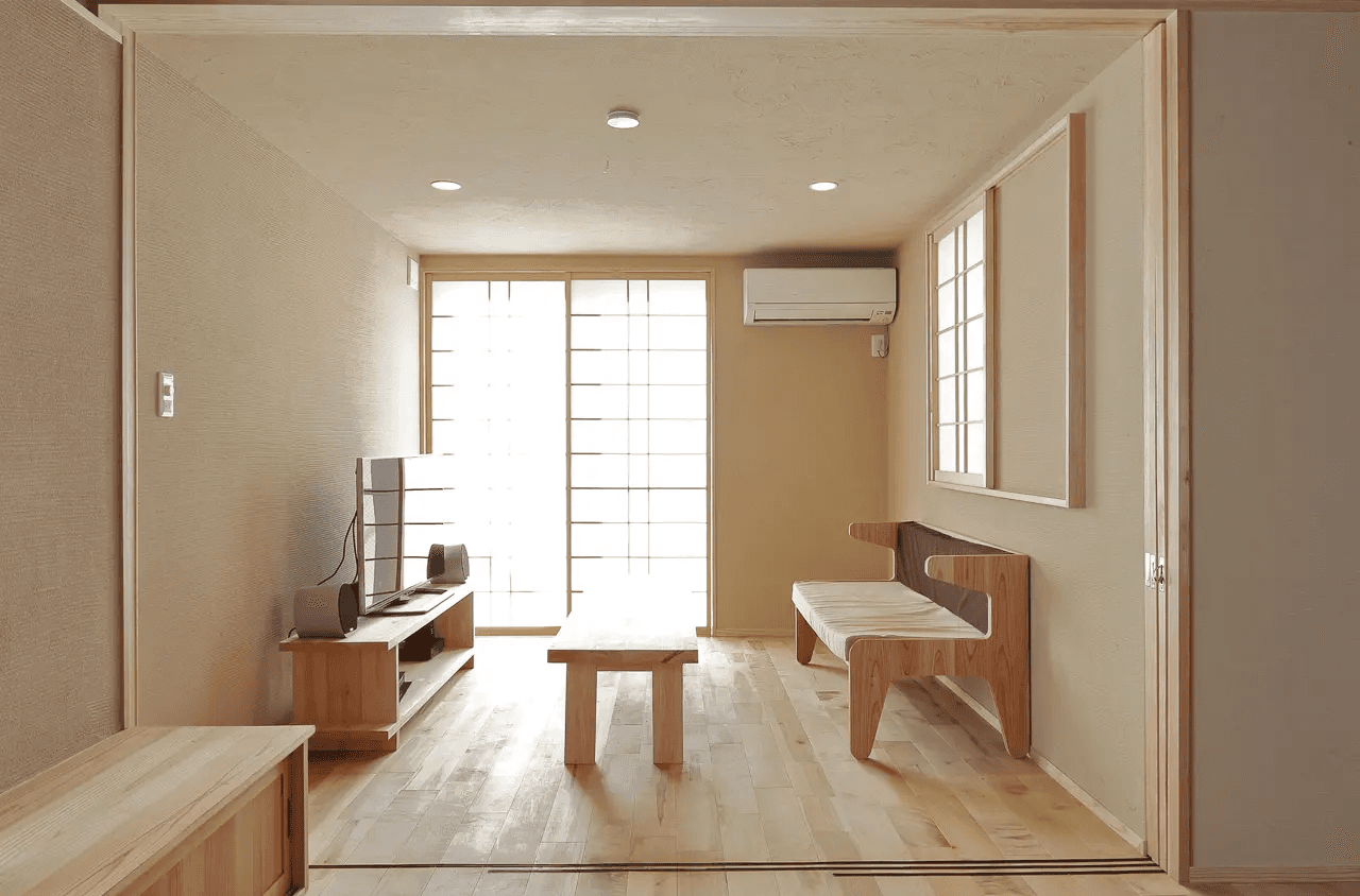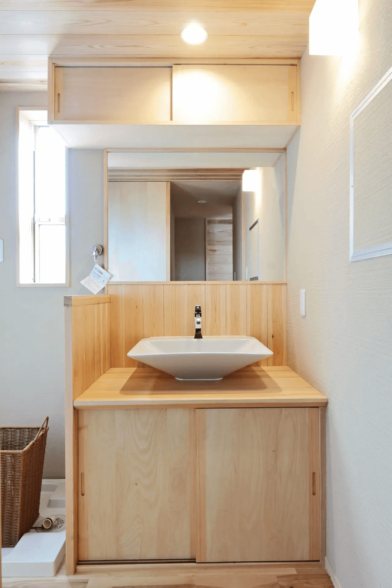 また、造り付けの造作家具の建具には、なかなか見ることのできない銘木である官木の秋田杉の柾目を使用していて大変落ち着きのある雰囲気になっています。