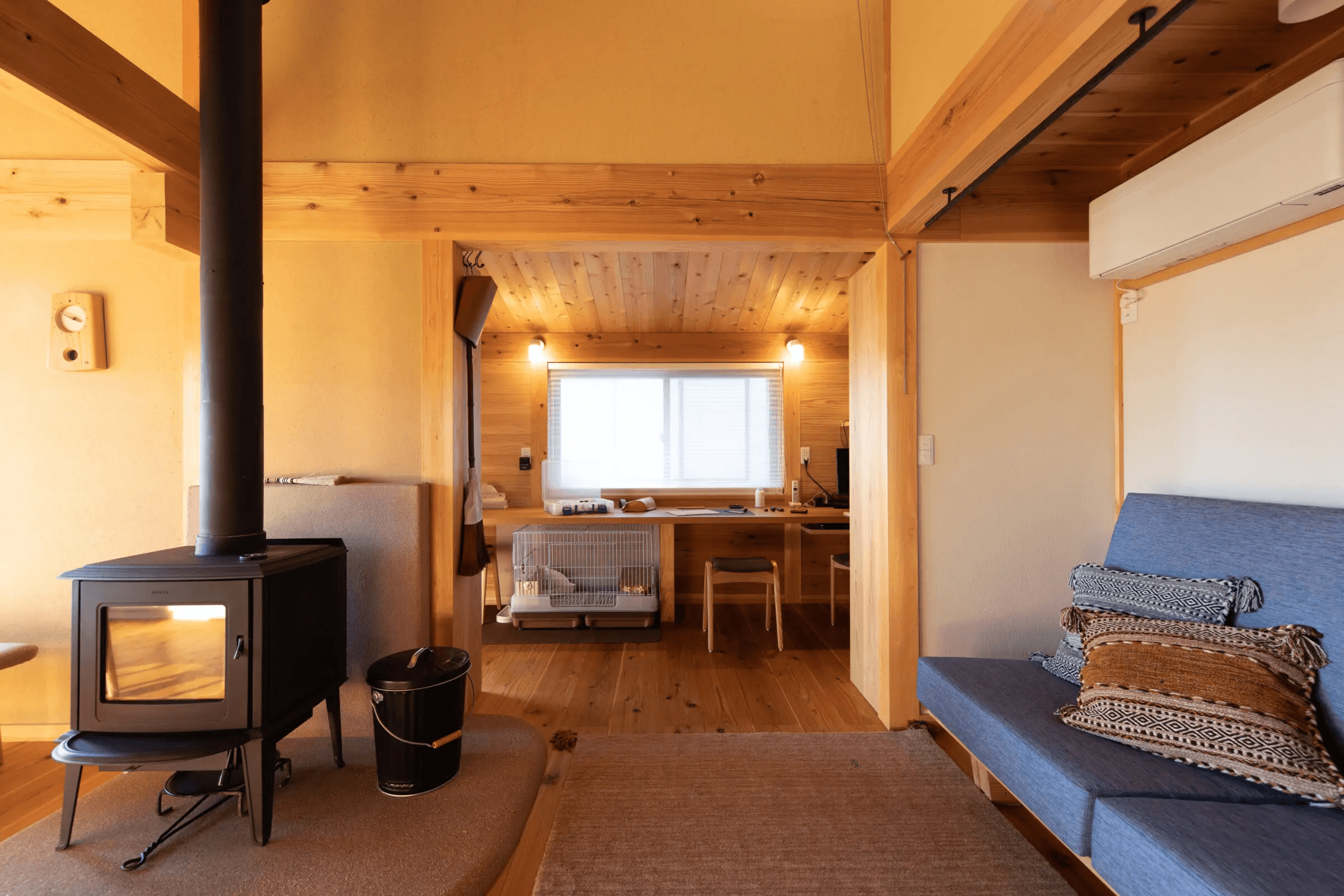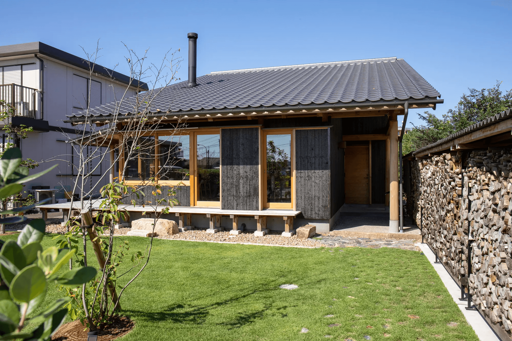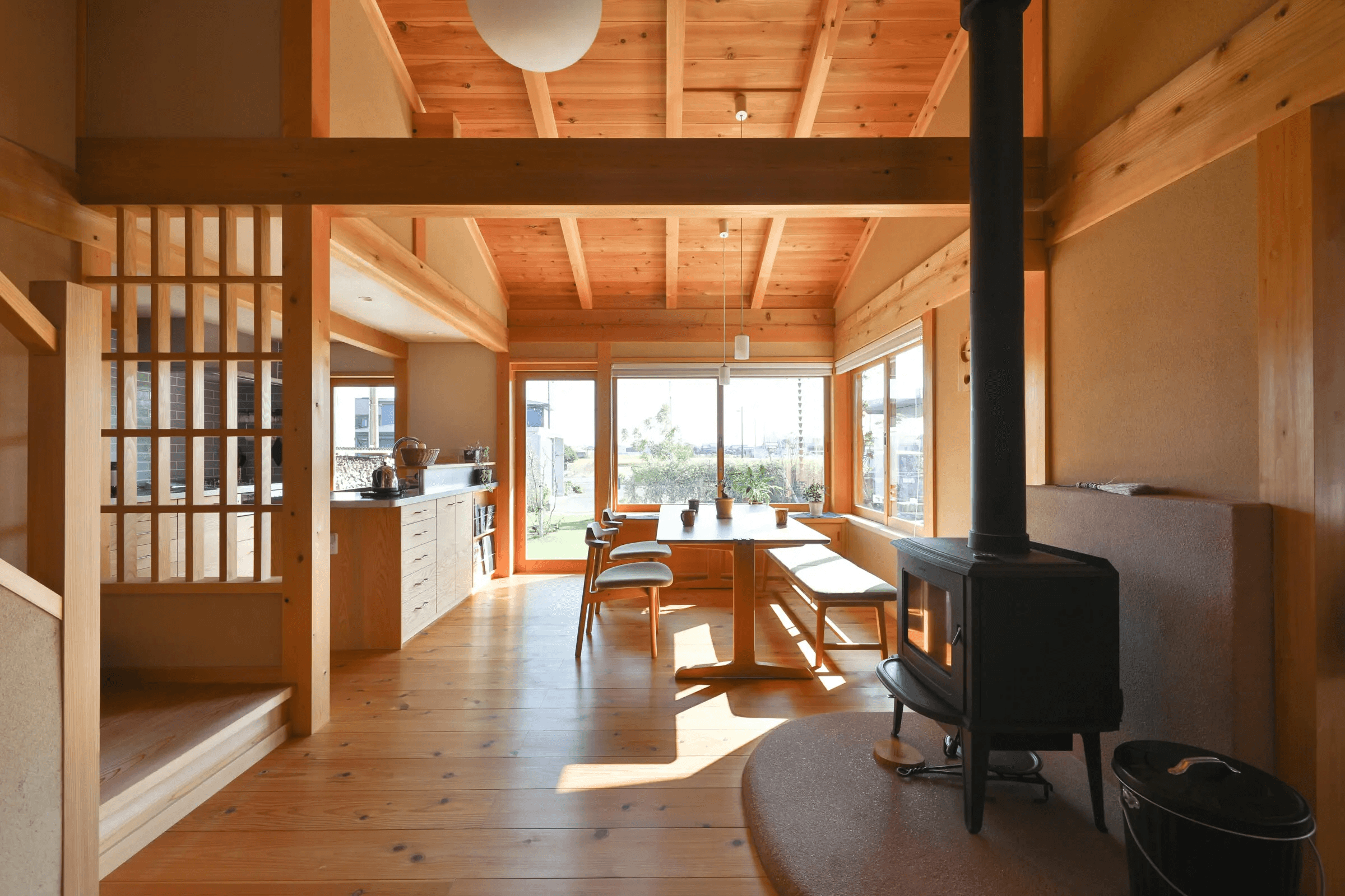 愛知県津島市に建つ、延べ約30坪の木組み土壁の家です。