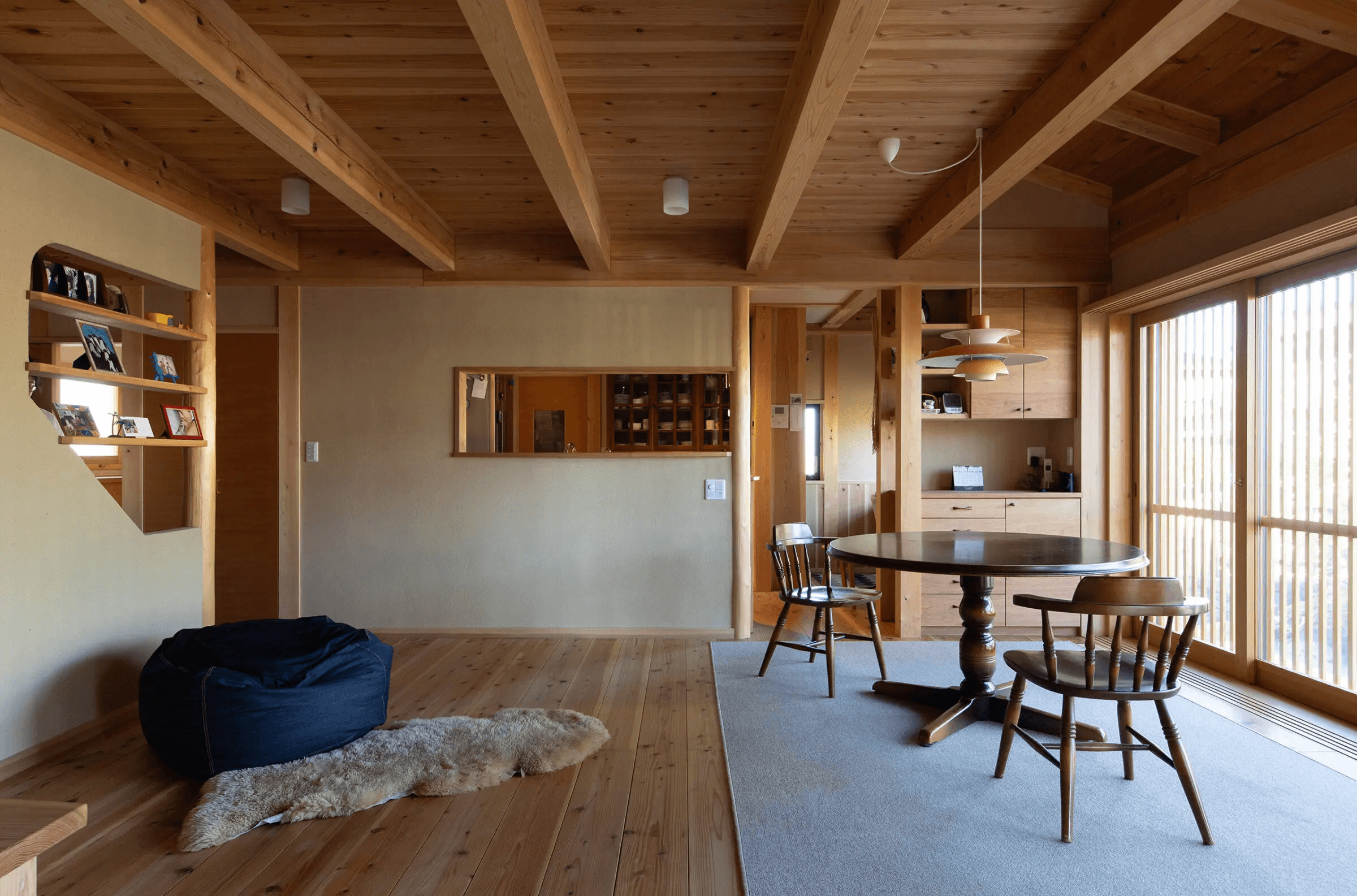 三重県鈴鹿市の76坪の土地に建つ、延べ面積約36坪の木組み土壁の家です。