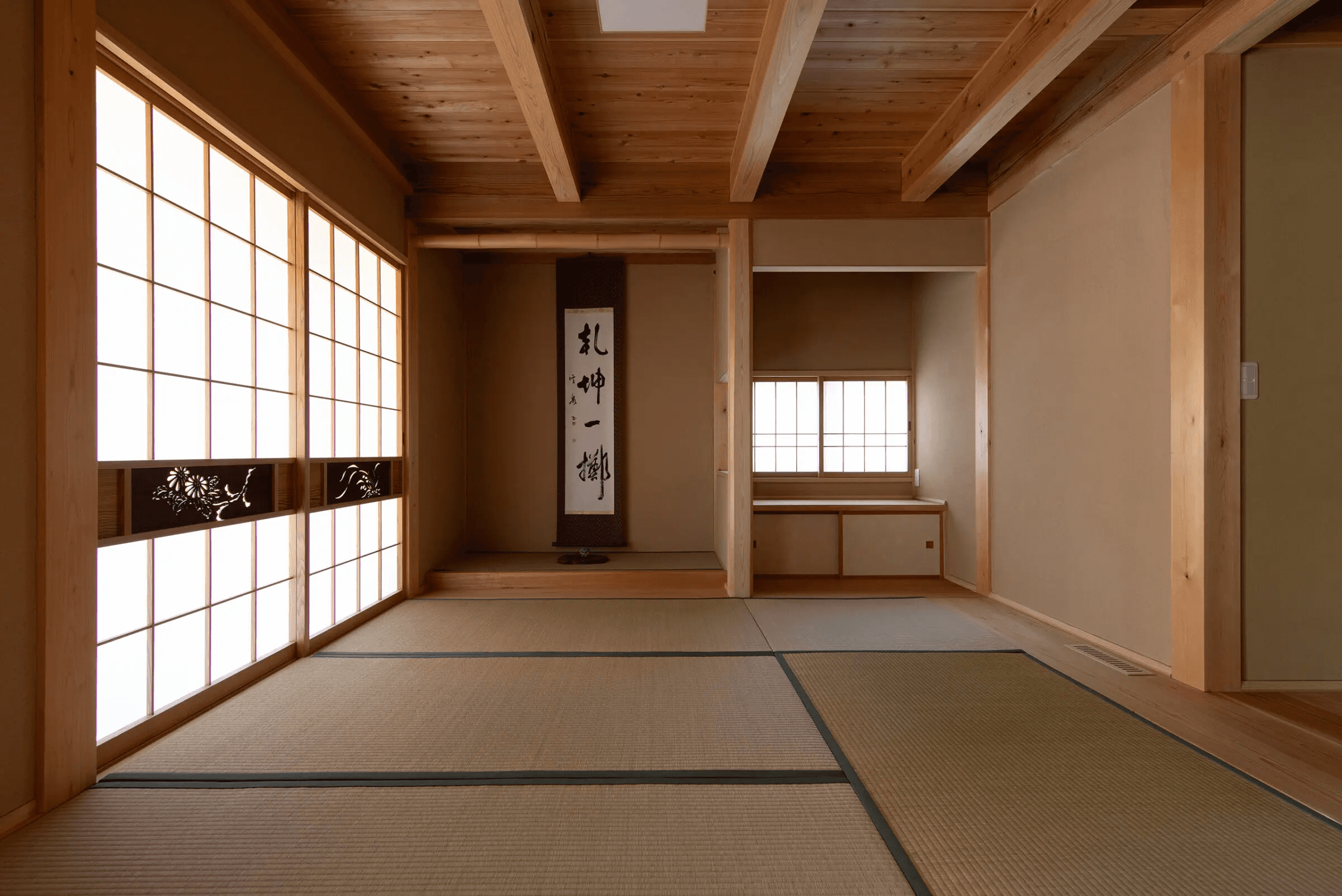 障子の透彫りは奥様のご実家に使われていた桐の欄間板です。
