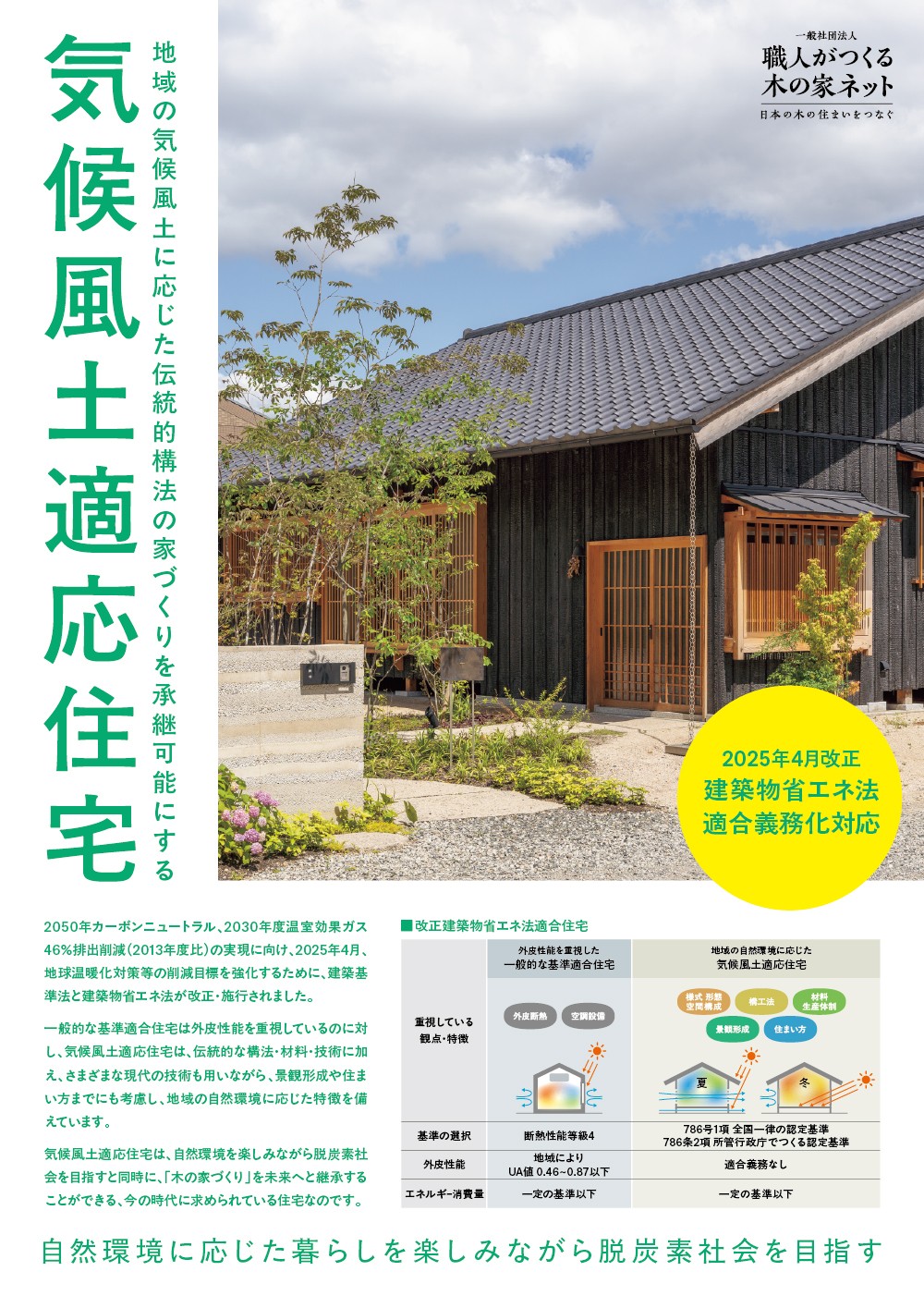 2025年4月改正の建築物省エネ法適合義務化に対応した、気候風土適応住宅のチラシができました。
