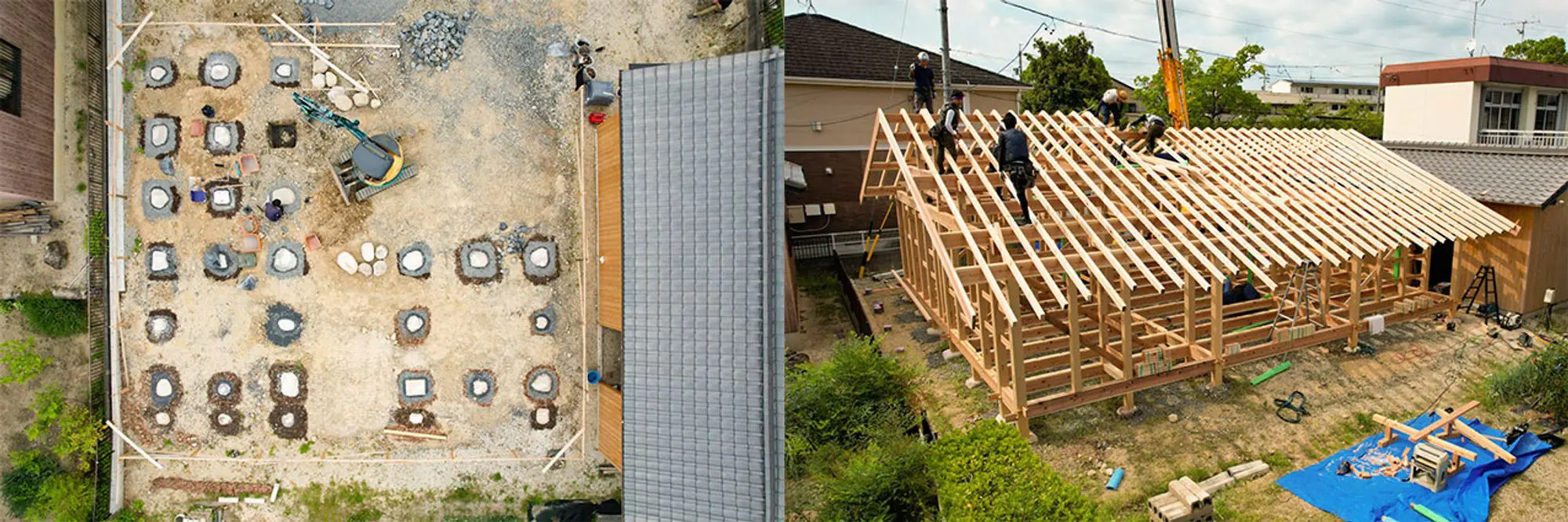 深い軒庇で雨から家を守り、縁の下の風通しが良い石場建てとする事でシロアリから家を守り、日本の気候風土で永く持つ家作りです。