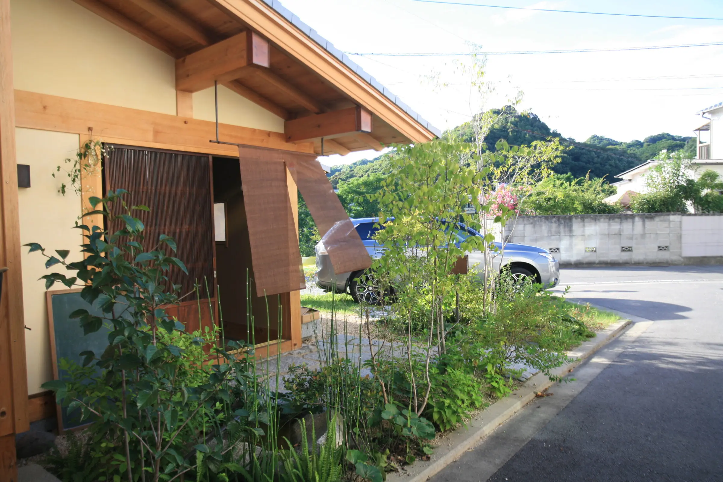 広い三和土の玄関土間と二間続きの畳の間を主リビングとしたつくりである。引戸形式の建具で季節に応じて空間を仕切り、また多層構成の建具によって外界との温熱環境を和らげます。深い軒庇下は雨天時の活用と外界との緩衝空間となっている。