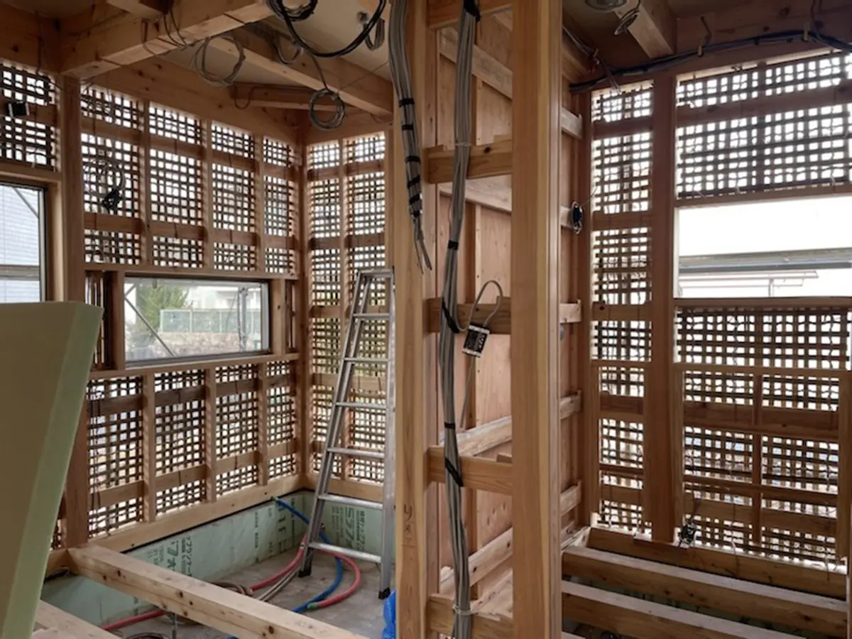 【床】ポリスチレンフォーム50mm(基礎断熱) 【壁】フォレストボード 20mm 【天井】羊毛ウール120mm