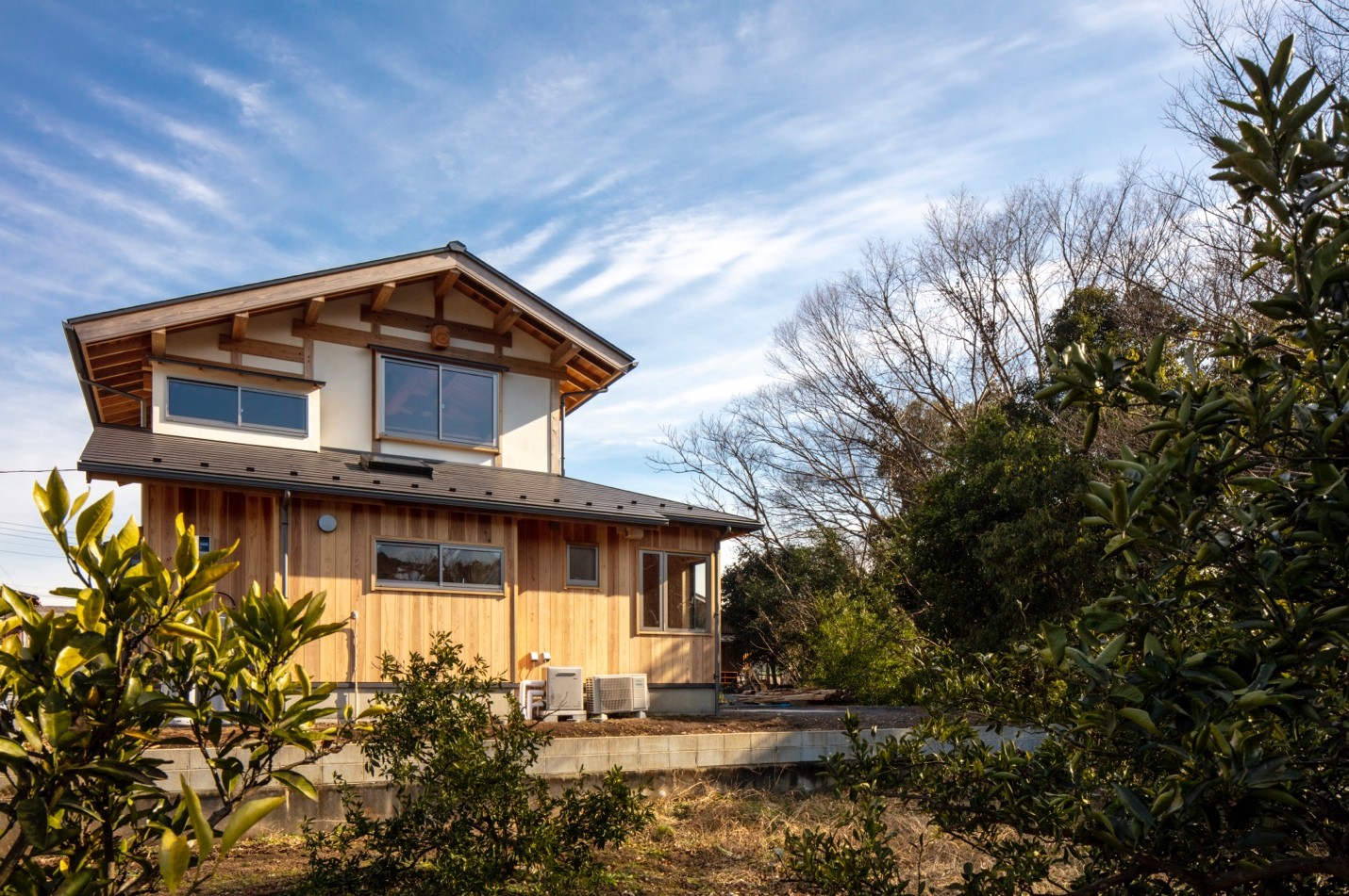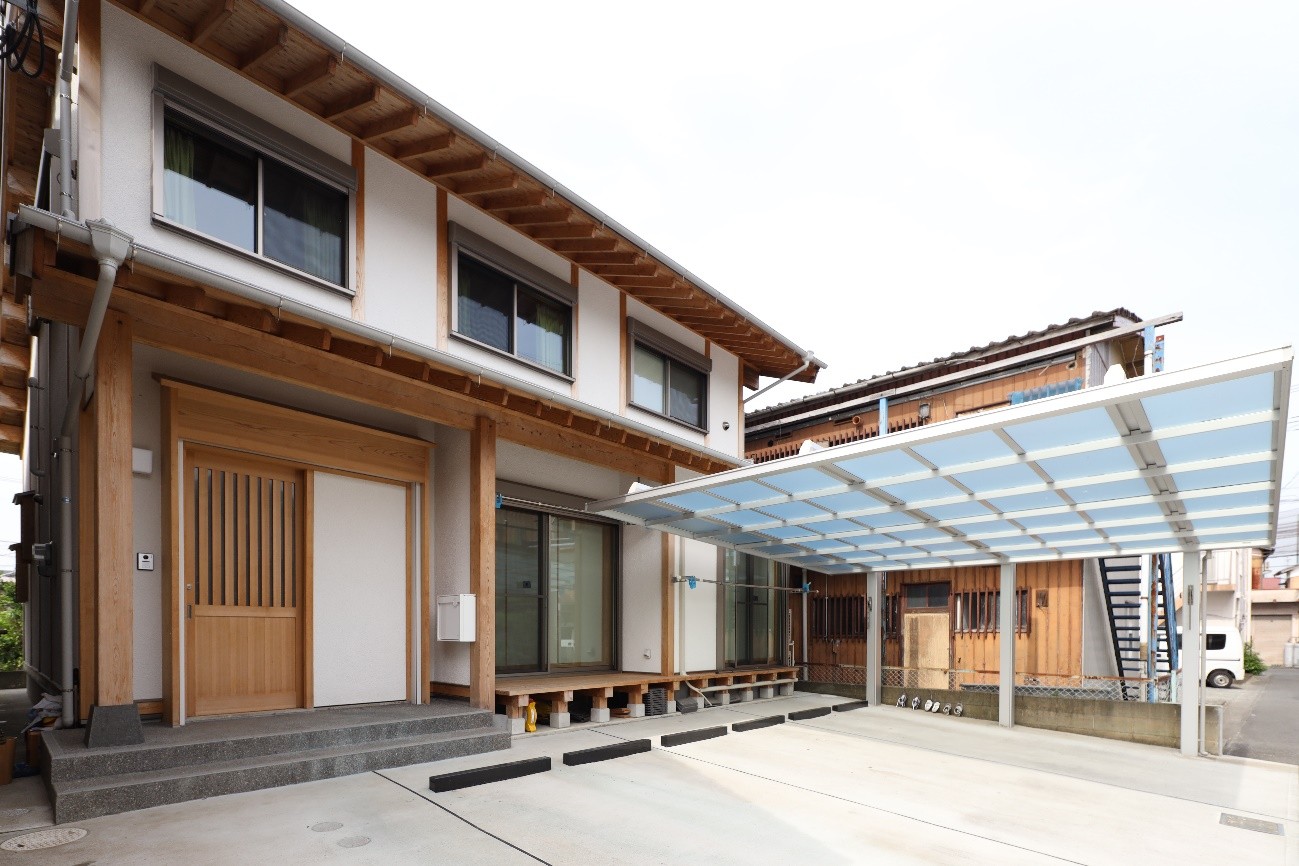 20年前に建築主の奥さんの実家を建設し、その御縁で親の敷地の一角に建てた30代の子世代の住まいである。伝統的構法での家づくりを若い世代に手が出る予算でとの思いで設計し、『現代の民家』となるよう田の字プランを基本とした明快な構造とした。準防火地域であり制約は大きかった。