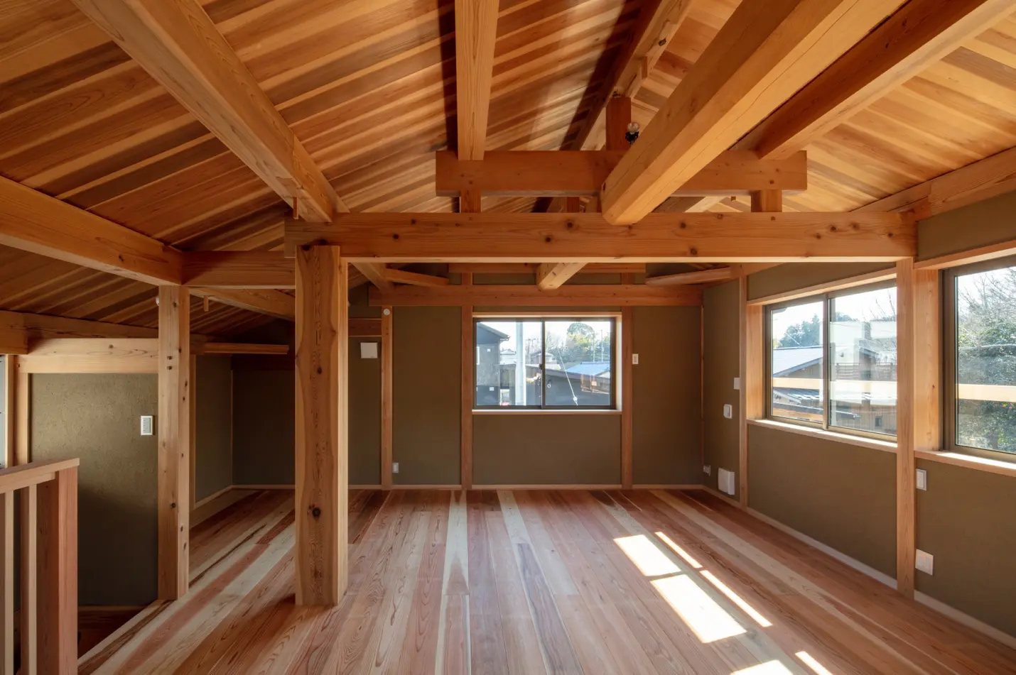 【柱・梁】埼玉県産西川材 桧・杉 【壁】埼玉県産荒木田土