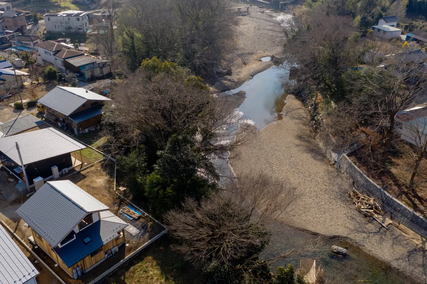 深い軒の出と環境、風景と調和した自然素材(杉板)の外装。こうした仕立てが連続することで里山の風景を整え、それがその地域の価値となることを目指したい。