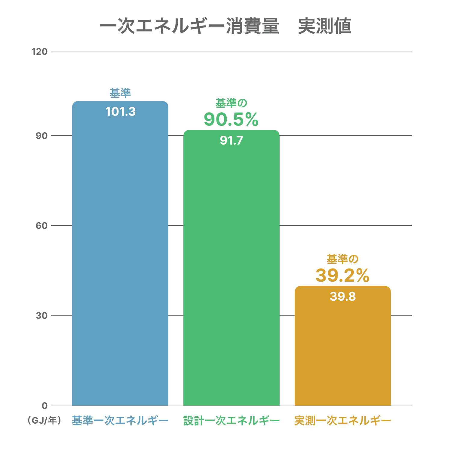 実際の暮らしの消費エネルギーは設計一次消費エネルギー設計値よりも遥かに低く、かつ住まい手への温熱環境の満足度についてのアンケートでも満足、という回答をいただいている。この値はともすると高気密高断熱の家の消費エネルギーとあまり変わらないのではないか、と推察する。かつ、満足度もそこそこあるのなら、閉じた家よりも周りの自然環境とのハイコンタクトがある暮らし方でも十分現在の省エネの基準に適うのではないだろうか。