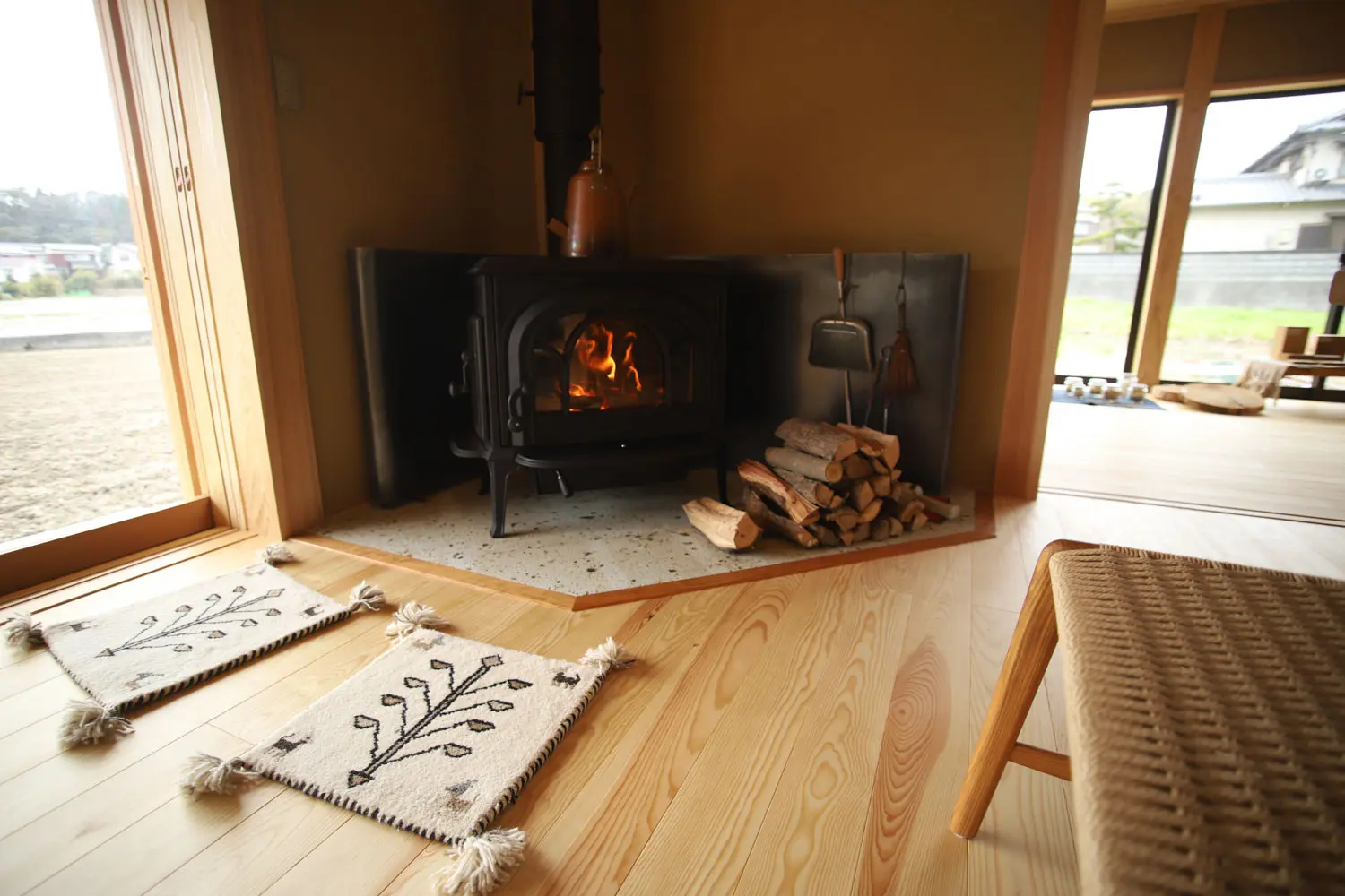 夏は深い軒下空間が食卓の場にもなり、冬は薪ストーブが調理器具となって暖かい続き間で寝るなど、季節に応じ快適な居場所や寝床を臨機応変に変化させ、小さなエネルギーで快適さを得る工夫を楽しみながら省エネな暮らしを目指されている。