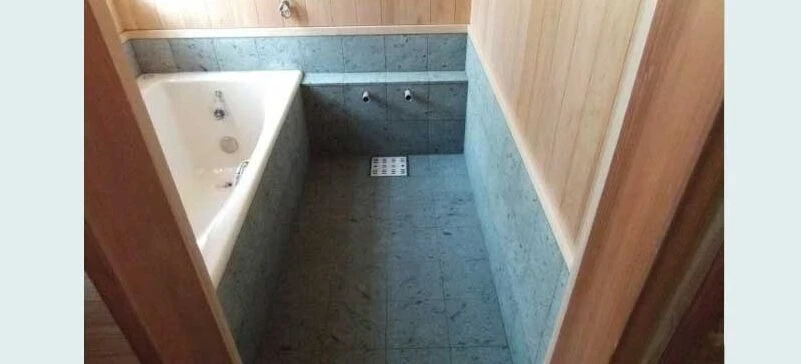 石・タイルを扱う、ダンゴ貼りで施工したがる職人です。寒冷地は違うやり方で対応します。私は、下地を取ってそこにただそれなりに石・タイルを並べるのはイヤなんです。真っすぐでないとイヤなんです。特に目地には気を遣います。目地こそ大事です。伝統工法の家づくりでは、現在は少なくなった「本物の風呂造り」を通して関わらせていただいています。写真は十和田石を貼った風呂です。